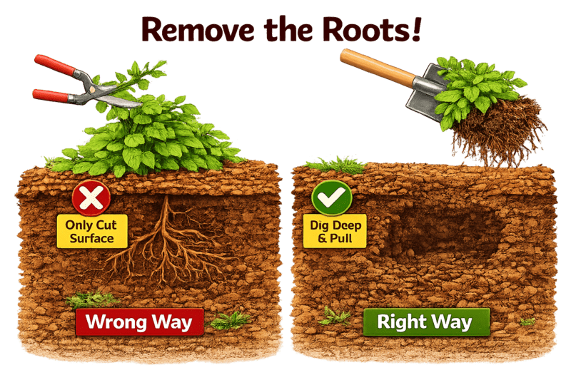 1. Digging Out the Roots (Best for Small Areas)