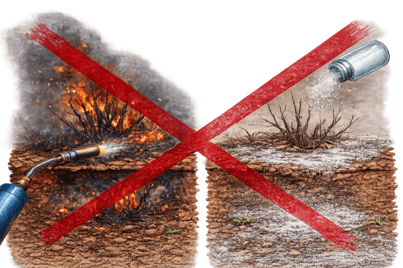 • Systemic herbicides (glyphosate-based, where legal)